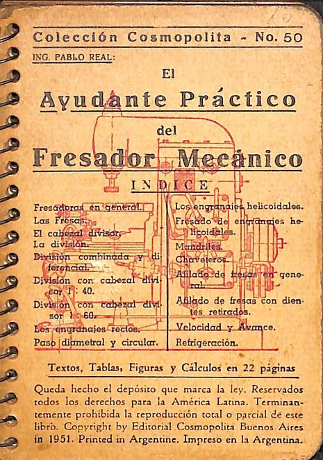 • EL AYUDANTE PRÁCTICO DEL FRESADOR MECÁNICO - COLECCION COSMOPOLITA Nº 50