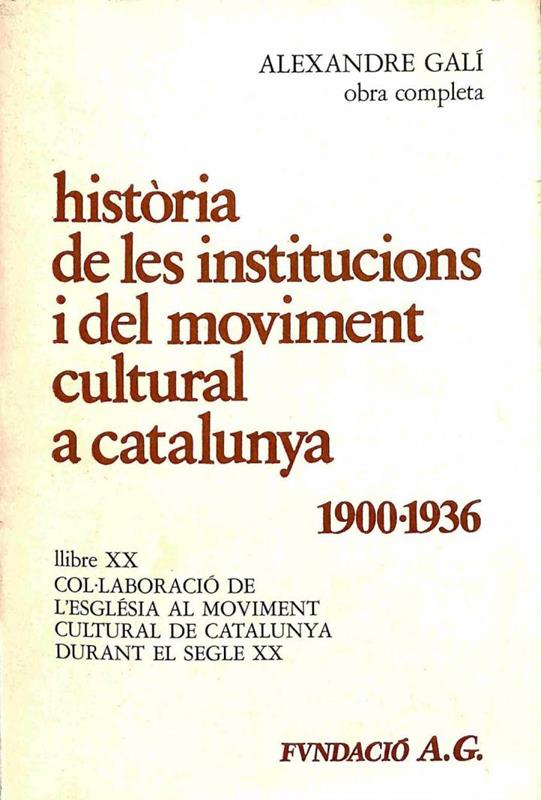 • LLIBRE XX. HISTÒRIA DE LES INSTITUCIONS I DEL MOVIMENT CULTURAL A CATALUNYA: 1900 A 1936 (CATALÁN)