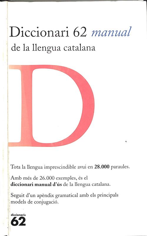 Tota la llengua imprescindible avui en 28.000 paraules, més de 26.000 exemples i un apèndix gramatical amb els principals models de conjugació. És el diccionari manual d?ús de la llengua catalana. Es tracta d?una eina adequada no sols per als estudiants d?ensenyament mitjà i superior, sinó també per a molts lectors que se senten poc motivats amb repertoris massa extensos i detallats.