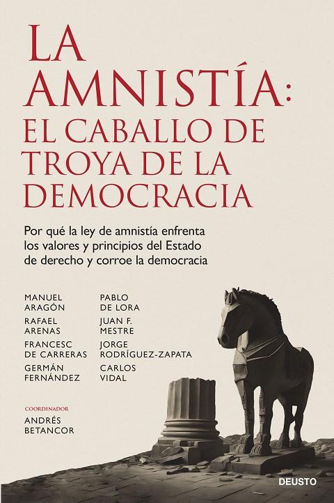 Además de desmontar las falacias argumentativas del discurso de la «reconciliación» con el que sus partidarios han querido legitimarla, los autores advierten de que la exoneración penal del Procés tiene efectos sobre principios nucleares del orden jurídico. Con la ruptura del consenso constitucional, cae la exigencia de gobernar pensando en la mayoría, en la Nación, sentando unos precedentes muy peligrosos para el mantenimiento de una institucionalidad robusta. Se ha inoculado el virus del autoritarismo: un caballo de Troya que corroe, gradualmente y desde dentro, la democracia española.