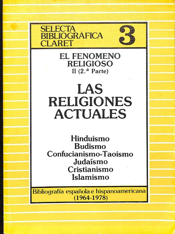 • EL FENOMENO RELIGIOSO II 2º PARTE LAS RELIGIONES ACTUALES - SELECTA BIBLIOGRAFICA CLARET Nº 3